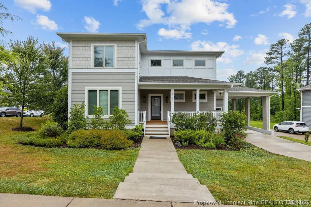 Stunning Prairie Contemporary Parade of Homes contender by B. Wallace in South Durham. Incredibly unique property on a corner lot in highly desirable area. Open floorplan with designated office/study on 1st level and 4 spacious bedrooms on 2nd level. Gorgeous octagon coffered ceiling, quartz countertops, hardwoods, carport and attached garage. Large walk-in closet in primary bedroom. Spacious front porch, private backyard deck and fenced in yard. Ride your bike or walk to the Tobacco Trail, only minutes from Southpoint Mall, dining, amenities and more. Quick access to I-40, Hwy 54, Apex Hwy and RTP.