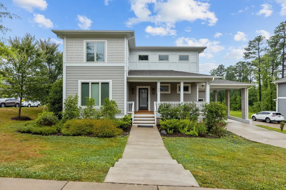 Stunning Prairie Contemporary Parade of Homes contender by B. Wallace in South Durham. Incredibly unique property on a corner lot in highly desirable area. Open floorplan with designated office/study on 1st level and 4 spacious bedrooms on 2nd level. Gorgeous octagon coffered ceiling, quartz countertops, hardwoods, carport and attached garage. Large walk-in closet in primary bedroom. Spacious front porch, private backyard deck and fenced in yard. Ride your bike or walk to the Tobacco Trail, only minutes from Southpoint Mall, dining, amenities and more. Quick access to I-40, Hwy 54, Apex Hwy and RTP.