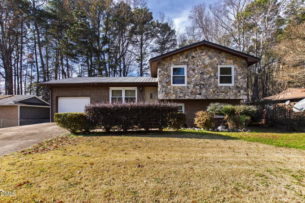 Tucked away on a quiet cul-de-sac in Fox Hollow, this charming home offers a wonderful opportunity for a buyer ready to add their own vision and updates. A flat, fenced backyard with patio and storage building creates an ideal outdoor setting, while the stone veneer front and metal roof add character and long-term durability. Inside, the home features three bedrooms, lovely living room, kitchen with gas range, and a light-filled dining room/sunroom just off the kitchen, offering flexible space for everyday living or entertaining. The lower-level den with fireplace provides a cozy retreat, and the attached garage adds everyday convenience. With a solid layout, appealing lot, and classic details, this property is full of potential—perfect for a homeowner looking to personalize or an investor seeking a smart opportunity in a desirable setting. HVAC installed in 2017. Home is in an estate, and being sold AS-IS.